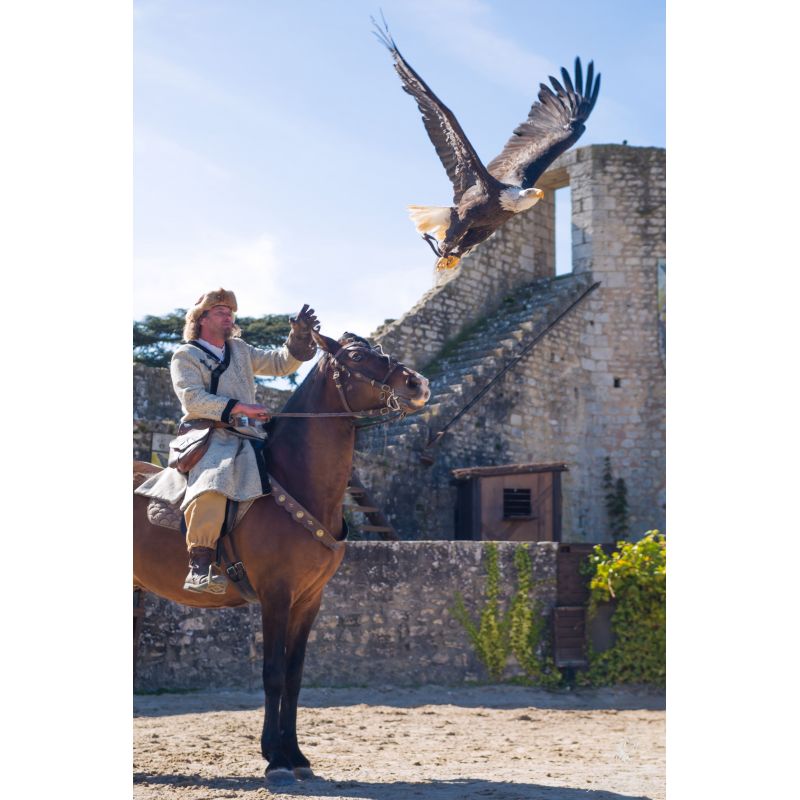 Ce spectacle enchanteur vous transporte dans l’univers de la fauconnerie à travers des tableaux successifs : des steppes d’Asie centrale en passant par le Proche Orient jusqu’au Seigneurs féodaux.