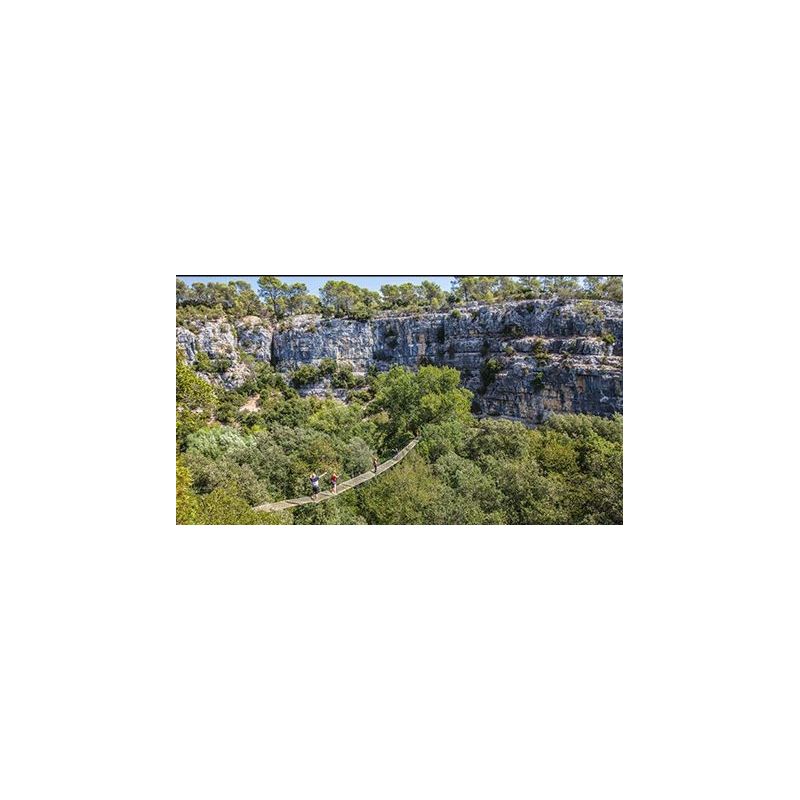 Parc d'aventure en plein air avec parcours de cordes et canyoning dans un cadre naturel.