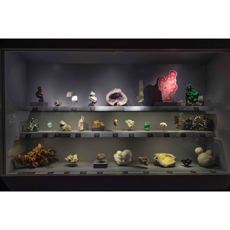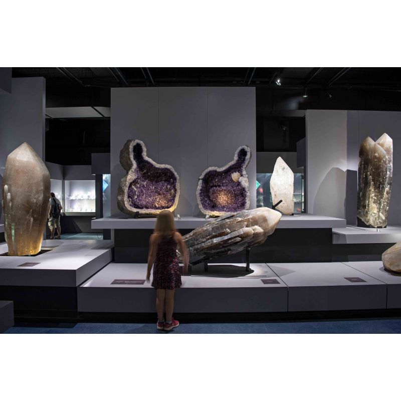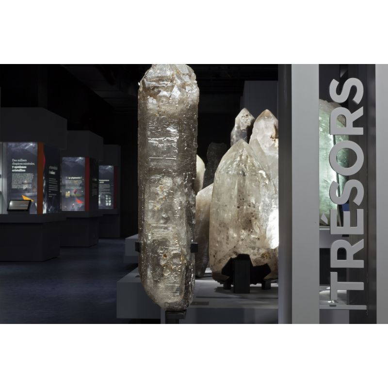Le public part à la découverte de la richesse du monde minéral. 600 pièces d'une diversité exceptionnelle sont exposées : minéraux des cinq continents, météorites, gemmes brutes ou taillées, bijoux historiques, objets sculptés..., autour d'un écrin central d'une vingtaine de cristaux géants.