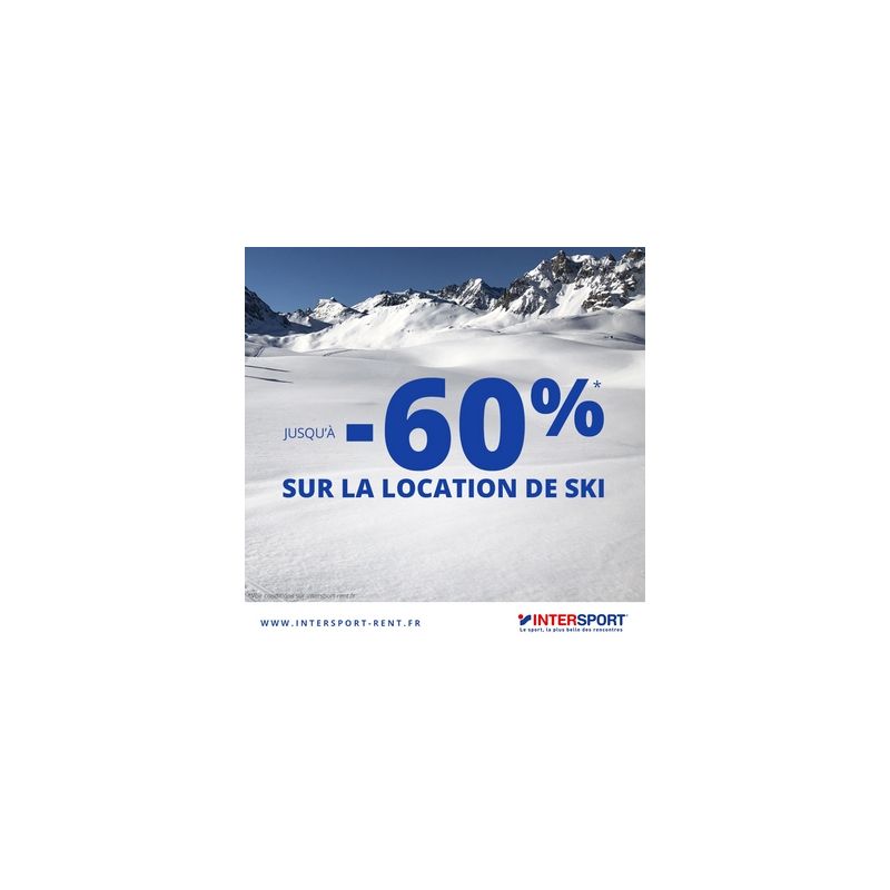 **Offre valable sur les tarifs du site www.intersport-rent.fr dans la limite de 55% de remise globale, prix tenant compte de la remise supplémentaire de 6%. Offre réservée aux membres ou bénéficiaires des programmes d’avantages de nos partenaires.