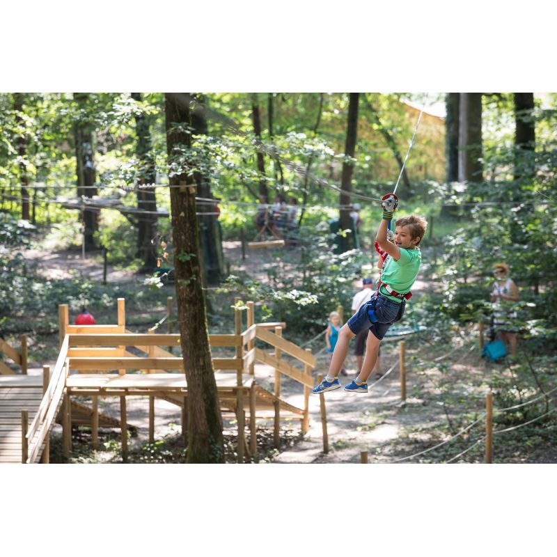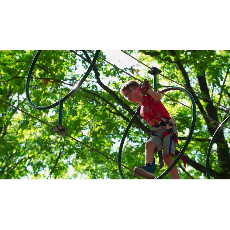Profitez de 12 parcours accrobranche : progressifs en difficulté et en hauteur, jalonnés de ponts, de filets, de tyroliennes ou de sauts. Vous évoluez de plateforme en plateforme, avec successions de passages plus ou moins périlleux : une expérience impressionnante et délirante !